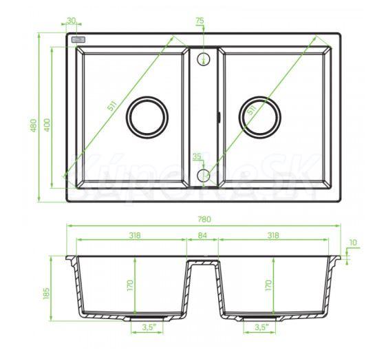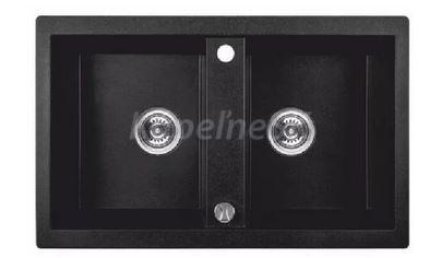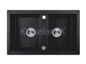 Laveo BARBADOS kuchynský granit DVOJdrez 78x48 cm,sif.,odb.na umýv.riadu,Čierny monokolor