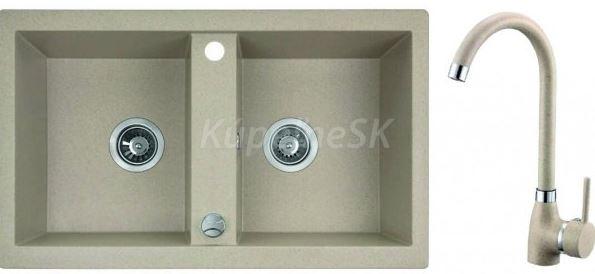 >>  KUCHYNE - Kuchynský tovar  >>  Kuchynské drezy  >>  AKCIOVÉ SETY (drez+batéria)  >>  Laveo Set BARBADOS kuchynský granit DVOJdrez 78x48 cm+batéria Granit 8 Béžová