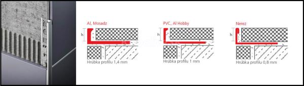 Používa sa na vonkajšie ukončenie obkladu a dlažby. Ukončenie vytvára ostrú hranu. Profil sa vyrába aj so špeciálnymi výsekmi, kde je možnosť ohýbania profilu.