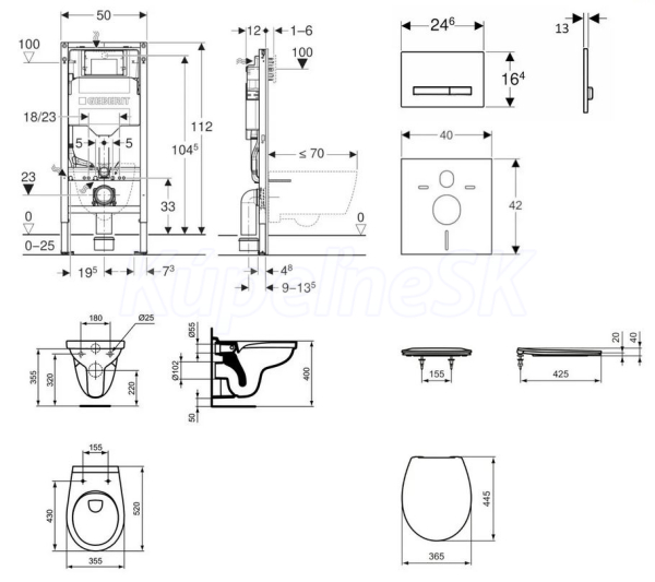- predstenový inštalačný prvok Geberit Duofix, so splachovacou nádržkou pod omietku