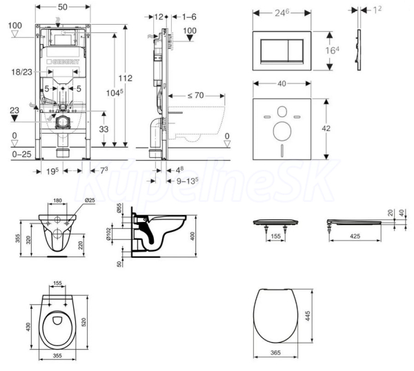- na montáž do systémových stien Geberit Duofix čiastočne vysokých alebo vysokých na výšku miestnosti