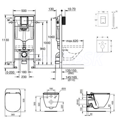 Kompletný inštalačný set na závesné WC