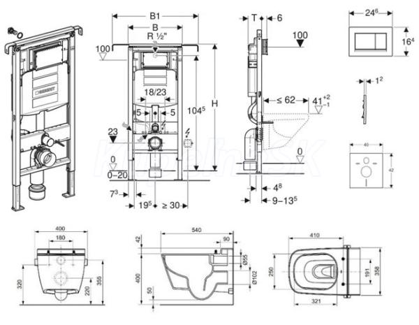 - predstenový inštalačný prvok Geberit Duofix (111.355.00.5), so splachovacou nádržkou pod omietku Sigma 12 cm, k inštalácii medzi bočné steny