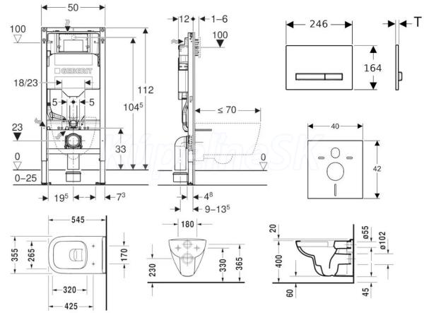 - predstenový inštalačný modul Geberit Duofix (111.300.00.6), sa splachovacou nádržkou pod omietku Sigma 12 cm