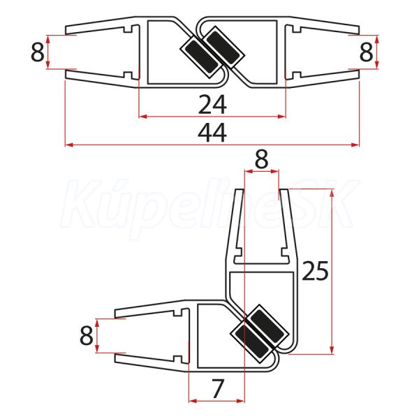 >> Sprchové kúty a žľaby >> Tesnenie pre sprchový kút - Aquatek >> Sapho THRON LINE Set magnetických tesnení 45 ° pre sklo 8/8mm, 2000mm NDTL04