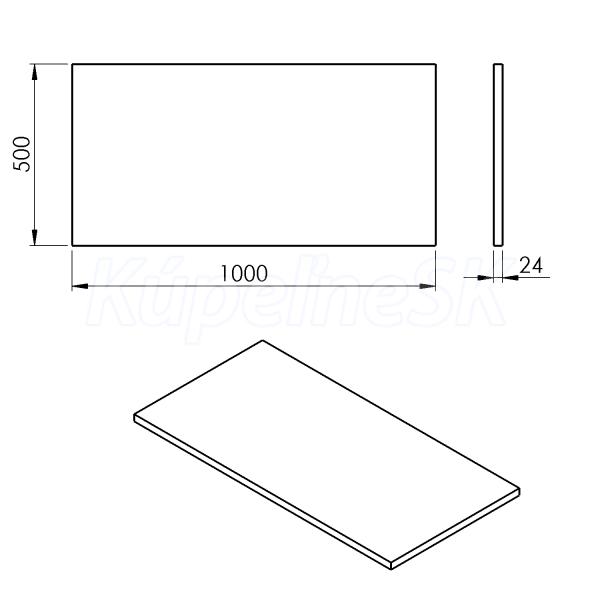 ZnačkaSAPHO SériaDosky PLATO Rozmer100x2,4x50 cm Šírka1000. mm Výška24. mm Hĺbka500. mm F