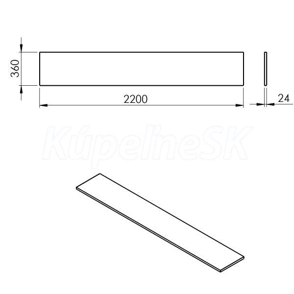ZnačkaSAPHO SériaDosky PLATO Rozmer220x2,4x36 cm Šírka2200. mm Výška24. mm Hĺbka360. mm F