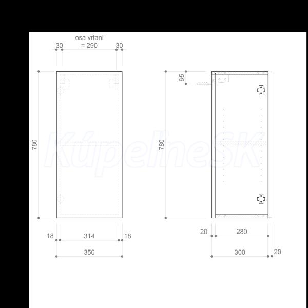 Sapho ESPACE skrinka 35x78x32cm, 1x dvierka, ľavá/pravá, dub Alabama