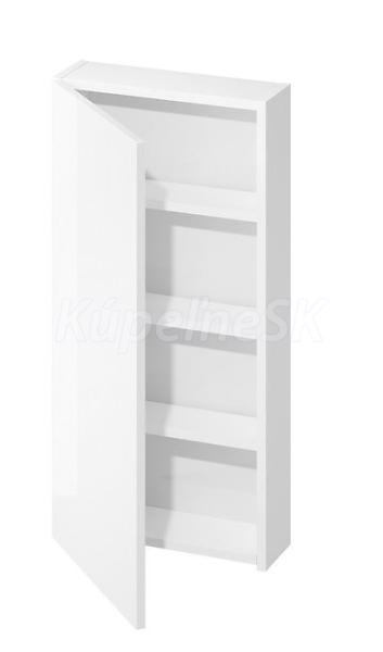 Závesná skrinka s nábytkovým čelom, ktorá je praktickým miestom na odkladanie drobnej kozmetiky - vo vnútri 3 praktické police. Skrinka má systém bezúchytkového otvárania dvierok a tiché "mäkké zatváranie". Čelo a korpus sú vyrobené z lakovanej drevotrieskovej dosky.