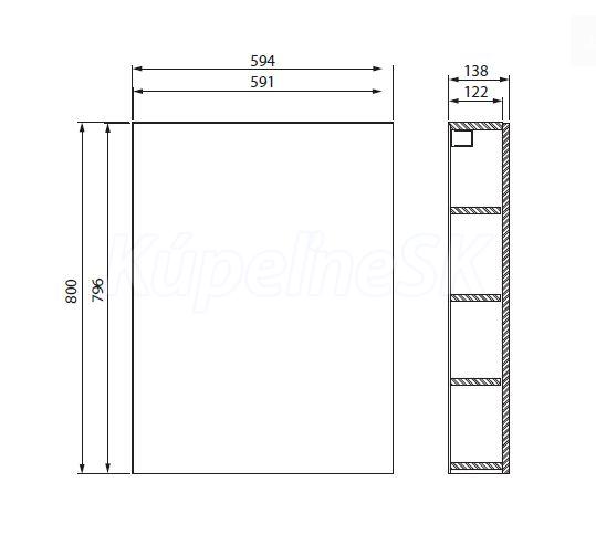 Rozmery: 594 x 138 x 800 mm (dxhxv)