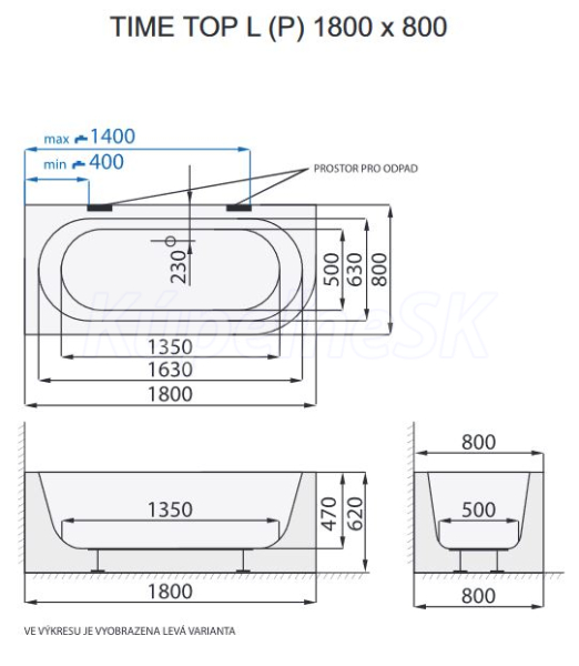 Voľne stojaca vaňa do priestoru TIME TOP - L (P) sa napája na odpad pomocou flexi odpadovej hadice HT DN 50.