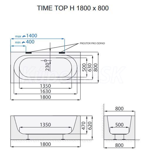 Santech TIME TOP-H 180x80 voľne stojaca akrylátová vaňa hranaté rohy+pozink.rám