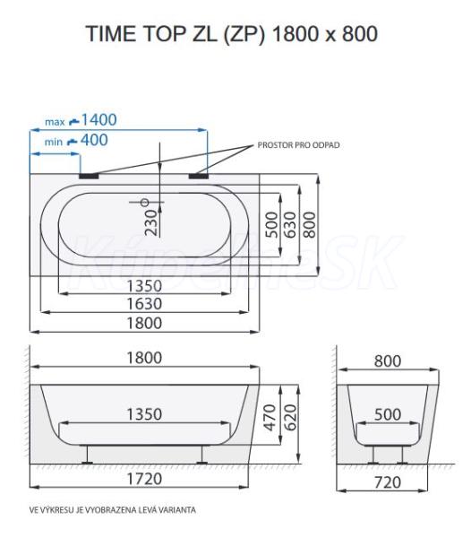 Santech TIME TOP-ZL 180x80 voľne stojaca akrylát vaňa 3xzošik.boky+pozink.rám, Ľavá