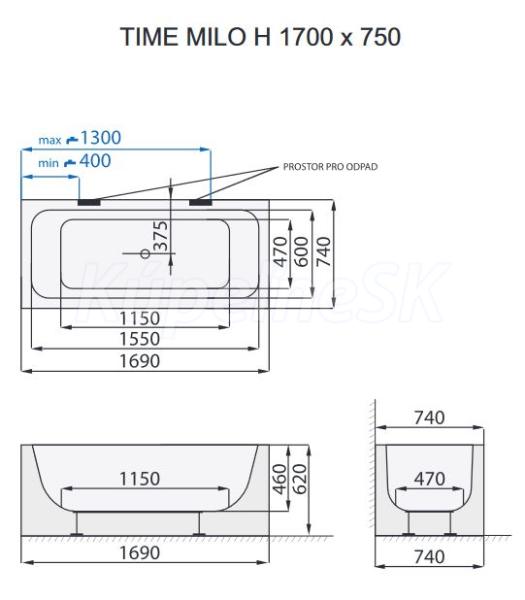 Voľne stojaca vaňa TIME MILO - H sa vyznačuje geometrickým hranatým vonkajším tvarom a je vhodná pre umiestnenie k stene. Plynulý priebeh línií s mäkko zakriveným vnútorným priestorom vytvára prirodzený kúpacie priestor bez zbytočného plytvania vodou. Pri navrhovaní kúpeľne nie ste nijako obmedzení, máte na výber z troch rozmerových variantov.