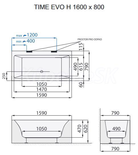 Mimoriadne široký okraj vane poskytne projektantom maximálnu voľnosť v plánovaní kúpeľne, pretože armatúry a príslušenstvo je možné variabilne umiestniť na okraj vane. Širší lem možno využiť taktiež na odloženie hygienických potrieb. Model TIME EVO - H je vhodný pre umiestnenie ku stene.