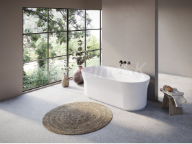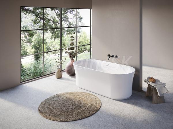 Vaňu nemožno doplniť vaňovou zástenou. Vaňový odtokový komplet (t.j. prepad, pileta, sifón, zápachová uzávera) a podpora (nožičky) sú súčasťou balenia. K vani ponúkame aj voľne stojacu batériu zabudovateľnú do podlahy. Všetky rozvody musia byť vedené v podlahe (ako odpadový, tak prívody vody pre podlahovú batériu). Krytka odtoku s funkciou ClickClack je dodávaná v bielej farbe. Balenie 3v1 navyše obsahuje aj čiernu a chrómovú variantu pre ľahkú výmenu podľa vašich preferencií.