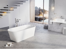 Vaňu nie je možné doplniť vaňovou zástenou. Všetky rozvody musia byť vedené v podlahe (ako odpadový, tak prívody vody pre podlahovú batériu). Vaňový odtokový komplet (t.j. prepad, pileta, sifón, zápachová uzávera) a podpora (nožičky) sú súčasťou balenia. K vani ponúkame aj voľne stojacu batériu CR 080.00 zabudovateľnú do podlahy.