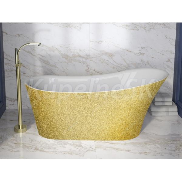 Besco CALIMA Glam voľne stojaca akrylátová vaňa 170x74 cm,Zlatá,sifón click-clack Biely