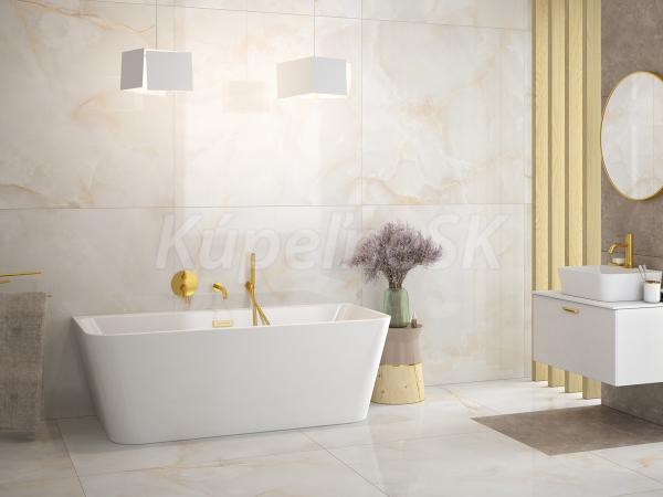 Besco VARYA voľne stojaca akrylátová vaňa 170x80 cm,250L,Biela,sifón click-clack Zlatý