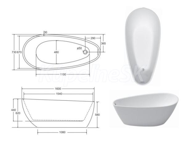 Besco GOYA A-LINE voľne stojaca akrylát. vaňa 160x73 cm,200L,Biela,sifón click-clack Grafi
