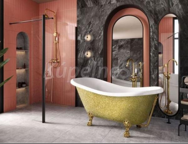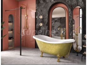 Symetricky oválna voľne stojaca retro vaňa OTYLIA GLAM sa vyrába v dvoch rozmeroch s kovovými ozdobnými nohami v štyroch farebných variantoch ( chróm, čierna, biela a zlatá farba ). Oblé tvary, robustný a kompaktný vzhľad s výrazným horným okrajom vane. Vďaka hmotnosti je manipulácia s vaňou veľmi jednoduchá. Akrylátový povrch vane umožňuje jeho ľahkú údržbu. Čelná strana je prevedená vo GLAM01 zlatej farbe, horná a vnútorná časť vane v bielej farbe. Vaňu nie je potrebné obmurovať a obkladať. Vaňu nie je potrebné obmurovať a obkladať. K vani je možné dokúpiť retro sifóny (s prepadom a bez prepadu) v troch farebných prevedeniach ( chróm, čierna farba a zlatá farba ).