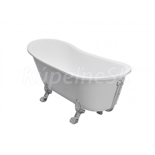 Besco OLAYA voľne stojaca oválna akrylátová retro vaňa 160x68 cm 170 L,Biela,nožičky Chróm