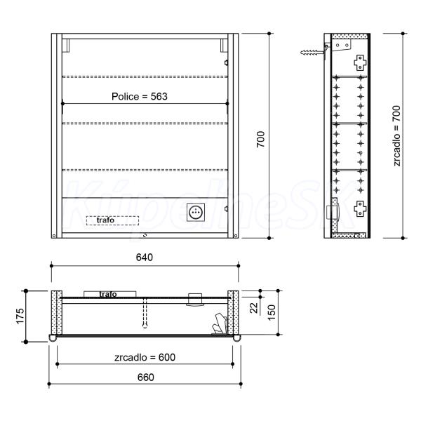 VýbavaOsvetlenie, Integrovaná el. zásuvka, Obojstranné zrkadlové dvierka, Spomaľovacie pánty