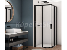 Ronal - Sanswiss DIVERA rohový sprchový kút 90x90 cm sklo Číre profil Čierny Posuvné dvere