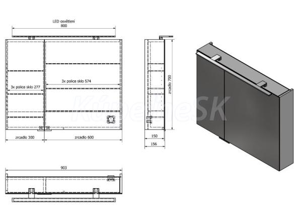 >> Kúpeľňový nábytok >> Zrkadlá a Zrkadlové skrinky >> Zrkadlové skrinky >> Sapho MIRRÓ galérka s LED osvetlením, 90x70x16cm, dub Alabama