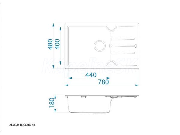 Alveus RECORD 40 G 91 černá (780x480mm)+ jedn. sifon F Vstavaný drez, univerzál. Prevedenie: granitový drez s odkvapom Vonkajší rozmer: 780 x 480 mm Rozmer vaničky: 440 x 400 x 180 mm Sitkový ventil 3 1/2 s prepadom, sifón pre úsporu miesta s odbočkou na umývačku Úchyty na upevnenie drezu v balení Predvŕtané otvory pre batériu Návod na inštaláciu v obrázkoch na obale Inštalácia do skrinky so šírkou 600 mm Váha: 12,25 kg Vestavěný dřez, univerzál. Provedení: granitový dřez s odkapem Vnější rozměr: 780 x 480 mm Rozměr vaničky: 440 x 400 x 180 mm Sítkový ventil 3 1/2 s přepadem, sifon pro úsporu místa s odbočkou na myčku Úchyty pro upevnění dřezu v balení Předvrtané otvory pro baterii Návod pro instalaci v obrázcích na obale Instalace do skříňky o šířce 600 mm Váha: 12,25 kg