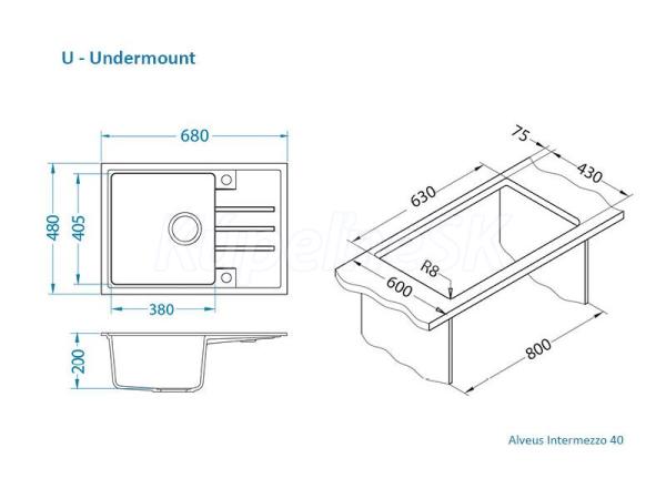 Alveus INTERMEZZO 40/91 - černý (680x480mm)jed. sifon Vstavaný drez, univerzál. Prevedenie: granitový drez s odkapom Vonkajší rozmer: 680x480 mm Rozmer vaničky: 380x405x200 mm Manuálny sifón 3 1/2 s prepadom, sifón na úsporu miesta s odbočkou na umývačku. Úchyty a tesnenia na upevnenie drezu v balení S otvorom pre batériu Návod na inštaláciu v obrázkoch na obale Inštalácia do skrinky so šírkou 500 mm pre montáž I 800 mm pre montáž U Váha: 13,75 kg Vestavěný dřez, univerzál. Provedení : granitový dřez s odkapem Vnější rozměr: 680x480 mm Rozměr vaničky: 380x405x200 mm Manuální sifon 3 1/2 s přepadem, sifon pro úsporu místa s odbočkou na myčku. Úchyty a těsnění pro upevnění dřezu v balení S otvorem pro baterii Návod pro instalaci v obrázcích na obale Instalace do skříňky o šířce 500 mm pro montáž I 800 mm pro montáž U Váha: 13,75 kg