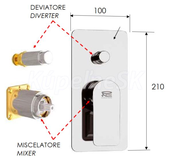- Sprchová batéria podomietková, bez príslušenstva, s prepínačom, 2 výstupy