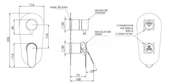 >>  Batérie vodovodné  >>  HOPA  >>  Hopa FONTI  >>  Hopa FONTI 93KB14 sprchová podomietková batéria s prepínačom Čierna matná