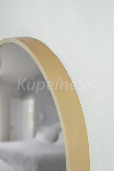 Oválne okrúhle dekoratívne zrkadlo bez osvetlenia BRANDIS GOLD v modernom zlatom ráme z brúseného hliníka do kúpeľne aj predsiene. Hĺbka rámu - 4 cm. Zrkadlo je možné zavesiť zvisle alebo vodorovne.