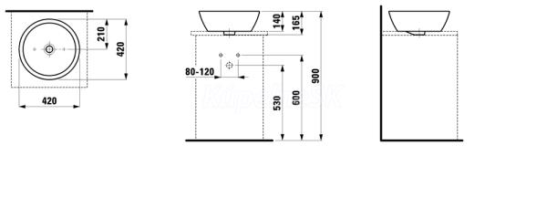 Laufen PRO umývadlo na dosku 42x42cm, bez otvoru pre batériu, biela LCC