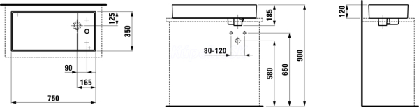 Laufen Kartell BY LAUFEN umývadlo na dosku 75x35cm,bez prepadu, s 1otv.pre batériu,biela