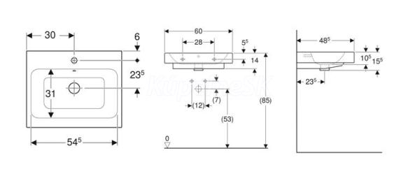 Umývadlo na dosku Geberit iCon: 60x48.5cm, Otvor pre batériu=V strede, Prepad=Viditeľné, Biela / KeraTect