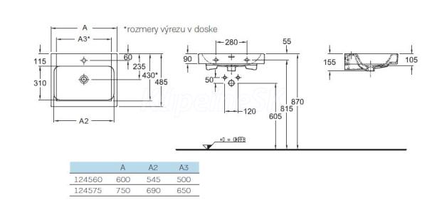 KERAMAG ICON Umývadlo na dosku,75 x 48,5 cm,otvor pre batériu,prepad, Keratect