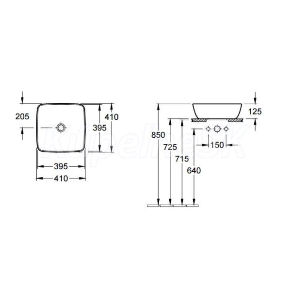 V&B ARTIS 41x41x12,5cm umývadlo na dosku hranaté bez prepadu, Biela 41784101