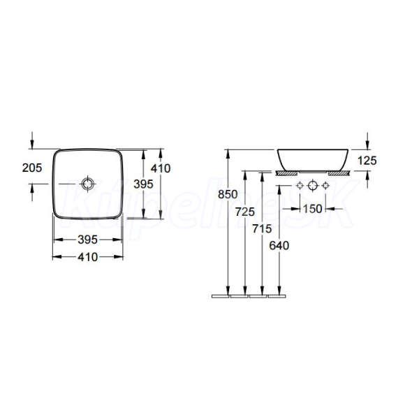 Villeroy & Boch Artis Umyvadlo k postavení na desku 410x410 Čtvercová, pro nástěnnou armaturu nebo armaturu se zvýšeným tělem, bez plochy pro otvor pro armaturu, bez přepadu Bílá Alpin CeramicPlus
