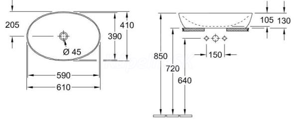 V&B ARTIS 61x41x12,5cm umývadlo na dosku bez prepadu, Biela 41986101