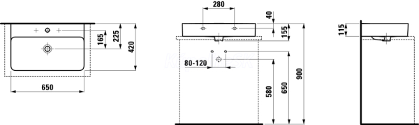 111 bez prepadu, s 1 otvorom pre batériu v strede 14 kg Laufen UMYVADLO BROUŠENÉ VAL 65 BÍLC