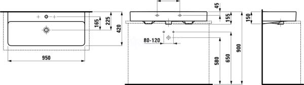 Laufen VAL Umývadlo na dosku 95x42cm, s 3 otvormi pre batériu, bez prepadu, brús biela LCC