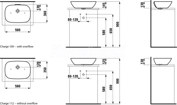 109 bez otvoru pre batériu 8 kg Laufen Umyvadlo mísa INO 50 LCC-bi