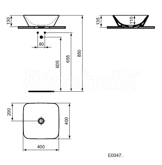 Ideal Standard E034701 CONNECT AIR Umývadlo na dosku 40cm,Bez prepadu,Bez otvoru na batéri
