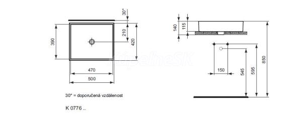 Montáž len v kombinácii s neuzatvárateľnou odtokovou garnitúrou a s umývadlovou batériou s nadstavcom alebo s podomietkovou umývadlovou batériou a s predĺženým sifónom. Inštalácia na dosku alebo v kombinácii so skrinkou pod umývadlo. Vrátane upevňovacej sady (E009567) a výrezovej šablóny (KK3340000).