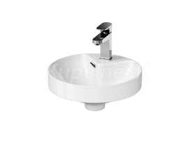 Keramické umývadlo na dosku kruh bez prepadu a bez otvoru pre batériu.