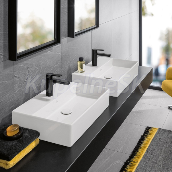 V&B 4A0761R1 MEMENTO 2.0 umývadlo na dosku 60x42 CeramicPlus, otv.pre bat, Biela Villeroy & Boch Memento 2.0 Umyvadlo k postavení na desku 600x420 obdélník, pro 3-otvorovou armaturu, prostřední otvor pro armaturu proražen, bez přepadu, doporučení: montáž s minimální vzdáleností mezi zadní stěnou umyvadla a stěnou: 50 Bílá Alpin CeramicPlus