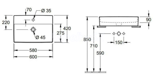 Villeroy & Boch 4A0761R1 MEMENTO 2.0 umývadlo na dosku 60x42 CeramicPlus, otv.pre bat, Bie
