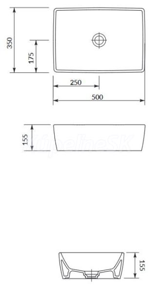 Cersanit CITY SP50 Umývadlo na dosku obdĺžnik 50,5x35,5x15,5cm keramické, Biela K35-048